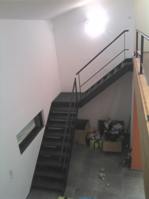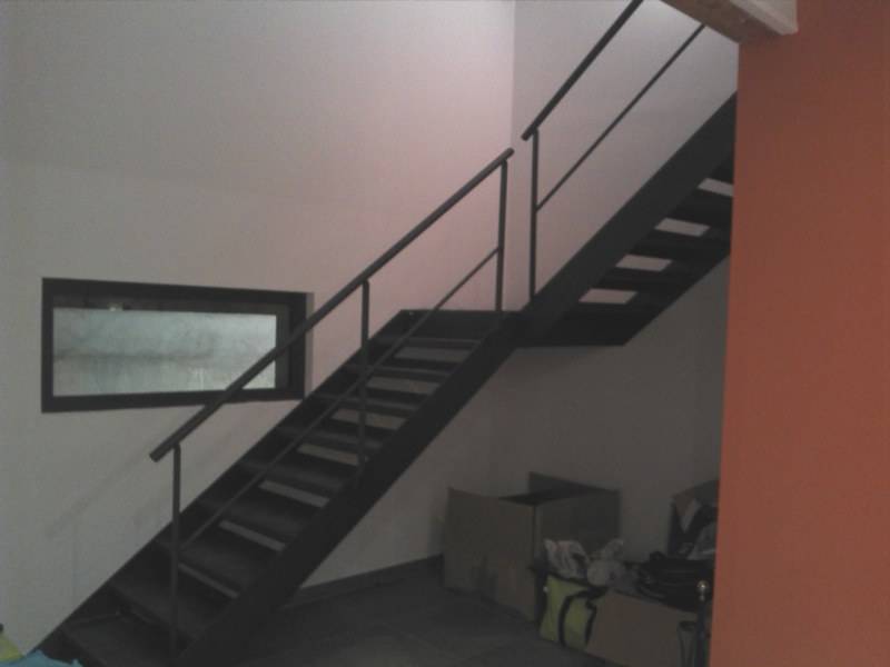 Ces escaliers sont à limons latéraux en fer plat 200x8 mm et les marches en tôles pliées épaisseur 3mm