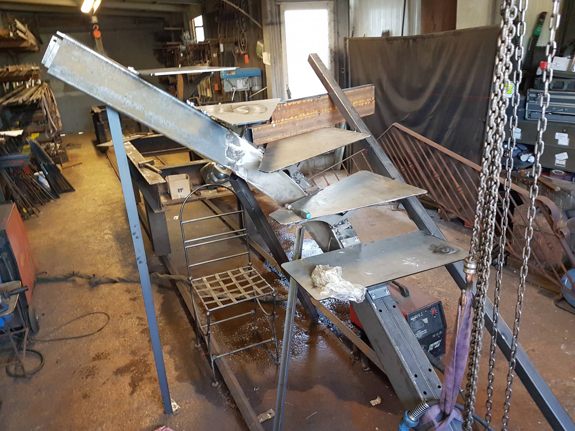 Les marches et contremarches sont en tôle d'acier ép 5mm.