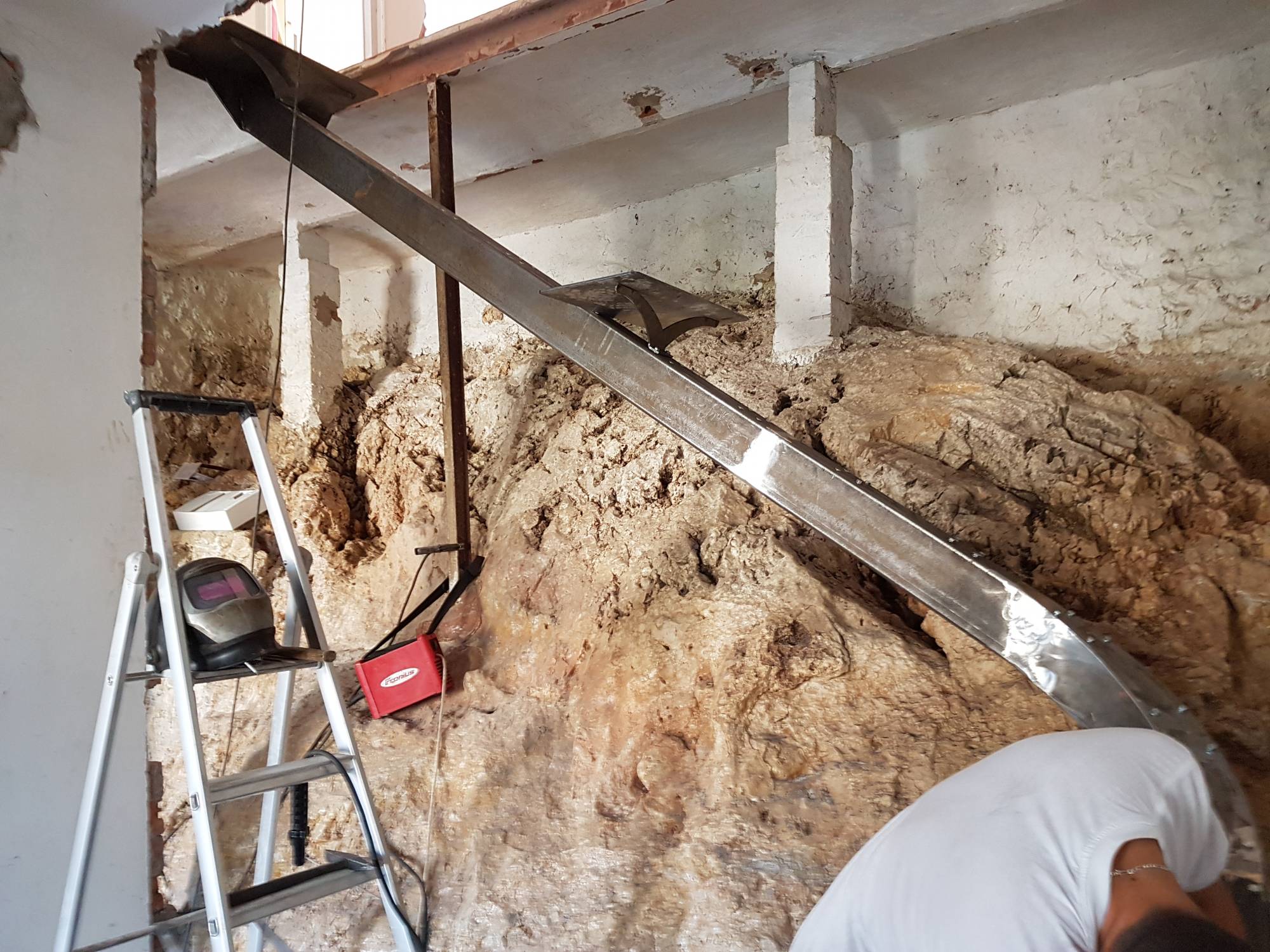 Cet escalier a été conçu pour s'adapter à l'intérieur particulier de cette maison perchée sur le Roucas. En effet, les murs sont bâtis sur la roche et l'escalier devait passer au-dessus.