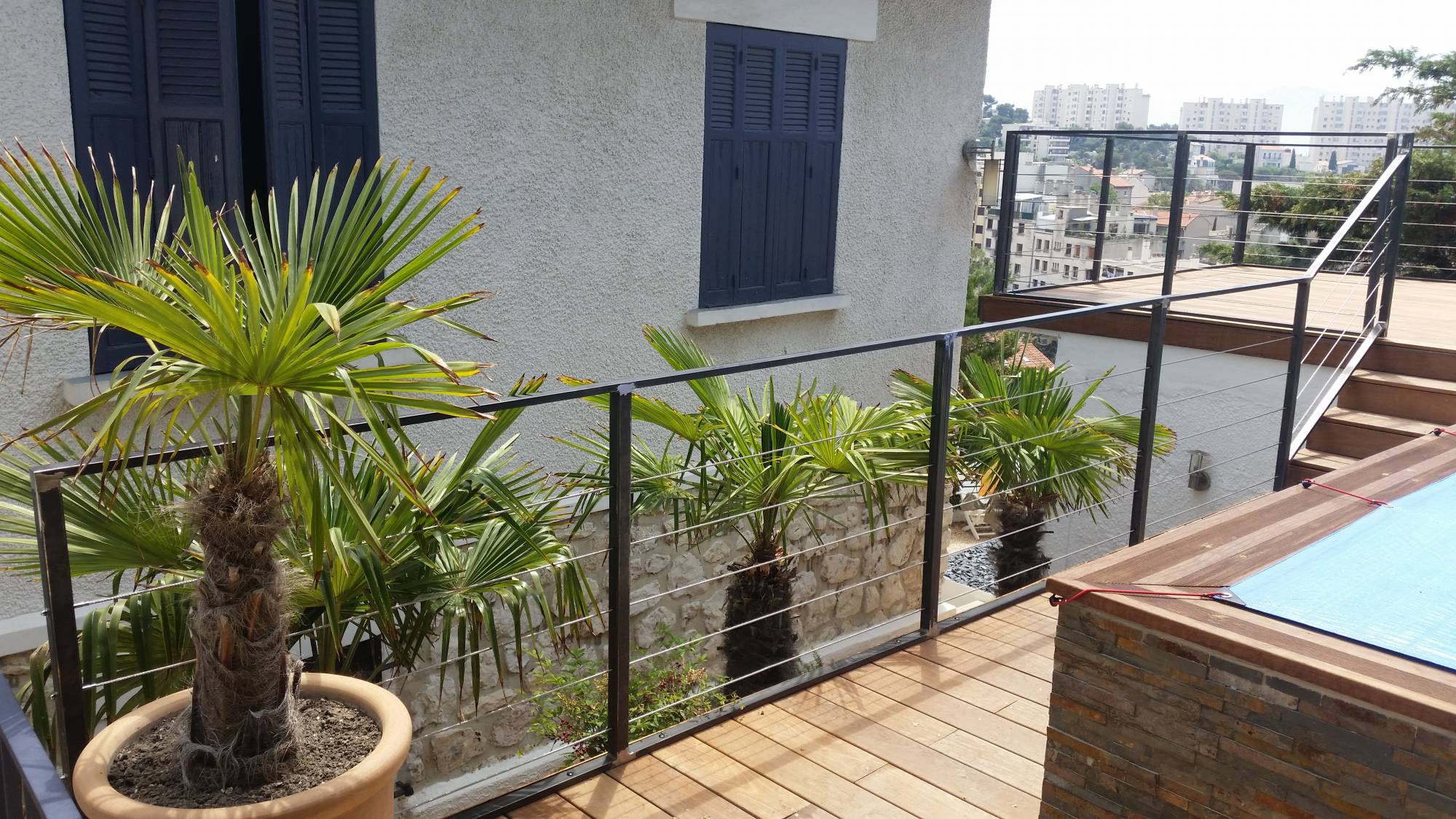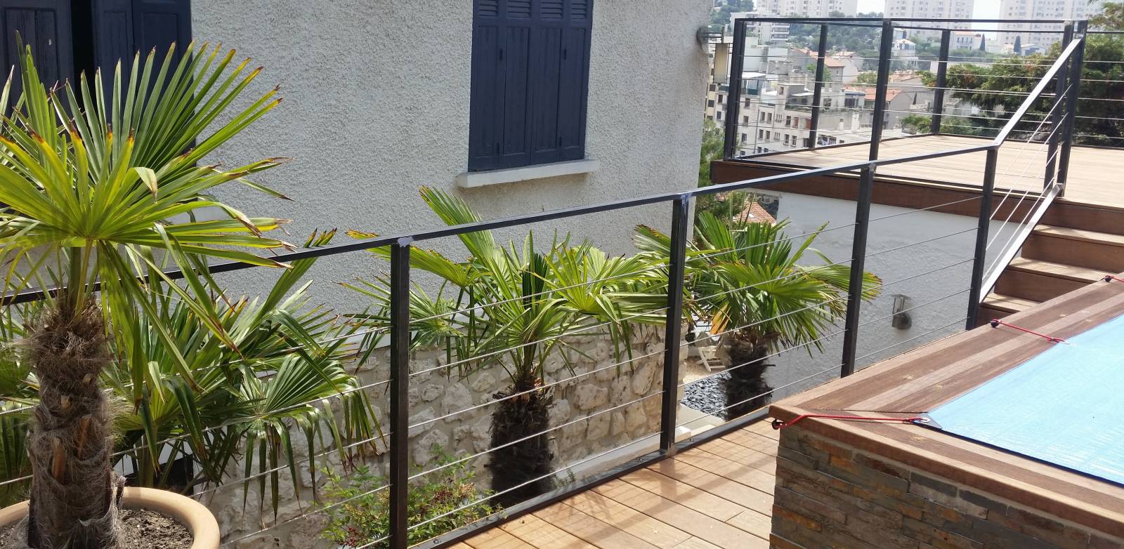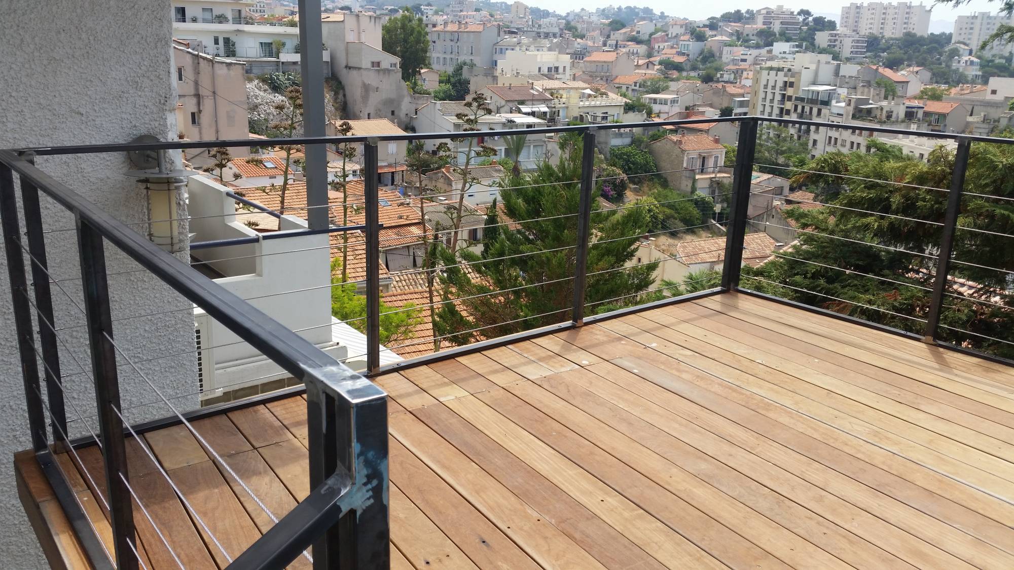 Fabrication et pose d'un garde-corps de design moderne en acier brut et câble inox près de Vendat.