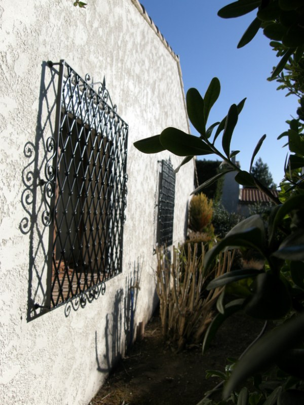 Fabrication et pose de grille de défense pour fenêtre avec barres à trous en diagonales sur Fos sur mer pour la sécurisation des fenêtres du premier étage.
