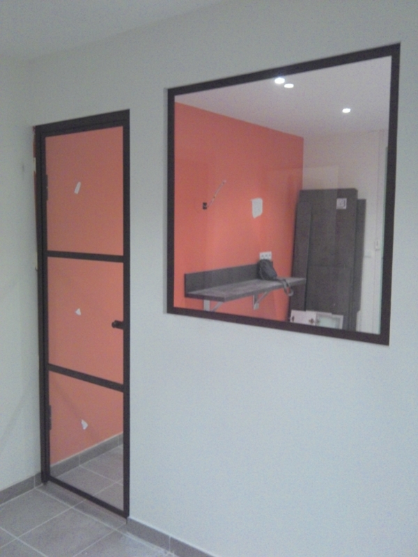 Art Metaux vous propose cette verriere fer forgé entre cuisine et couloir sur Aix en Provence.