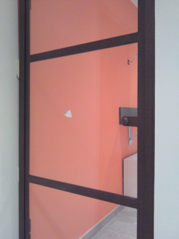 Cette verriere composée d'une porte vitrée et d'une baie offre la clareté necessaire a ce petit espace un peu sombre avant cet ouvrage.